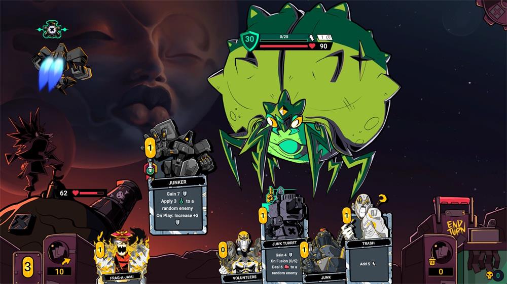《Zet Zillions》作为剧情驱动的类Rogue卡牌构筑游戏,将带你体验一场古怪的太空戏剧。带着泡沫枪,驾驶星舰“暴力宝贝号”,穿过一张张太空地图,为人类寻找新的家园。独一无二的卡牌融合系统能产出100多种可能性,足以大闹一场。对了,还可以把舰上的成员扔到星球上,突破星球人数上限,把它们炸得粉碎!
