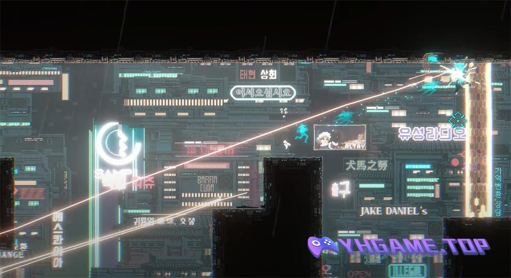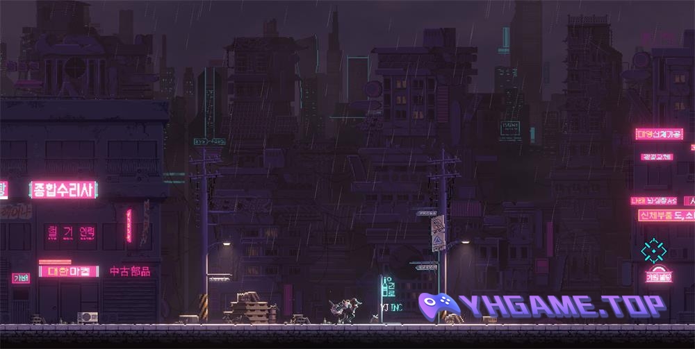 一位退役勇士利用自己的铁臂攀登着世代巨富的私有城市。目的是揭发城市的秘密,并找到“山娜菲”而报仇。以赛博朋克风反乌托邦为背景的精彩2D“铁链动作”游戏,《闪避刺客》由此开始。