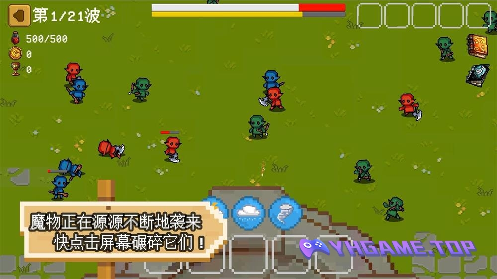 安静祥和的草原,突然来了一群不速之客! 它们受撒旦的命令来突袭神的城墙! 你被神雇佣为新的勇士,誓要和城墙共存亡! 此刻,遵循神的旨意,用你的手指来碾碎它们吧!