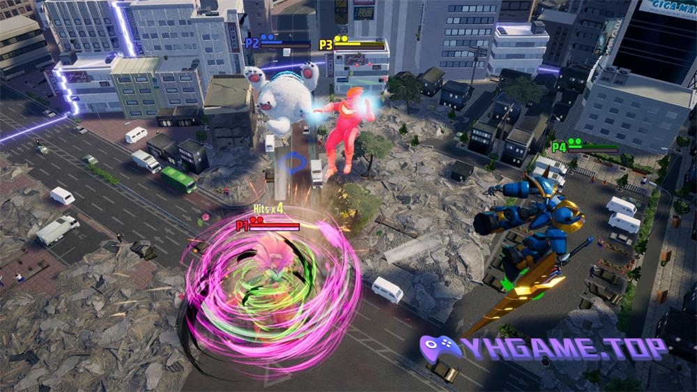 在泰坦之中称霸天下吧!《GigaBash 巨击大乱斗》是一款多人战斗擂台游戏,有着受特摄片启发的巨型怪兽,具有传奇色彩的英雄,震天动地的特别攻击,以及可以完全摧毁的擂台场景。
