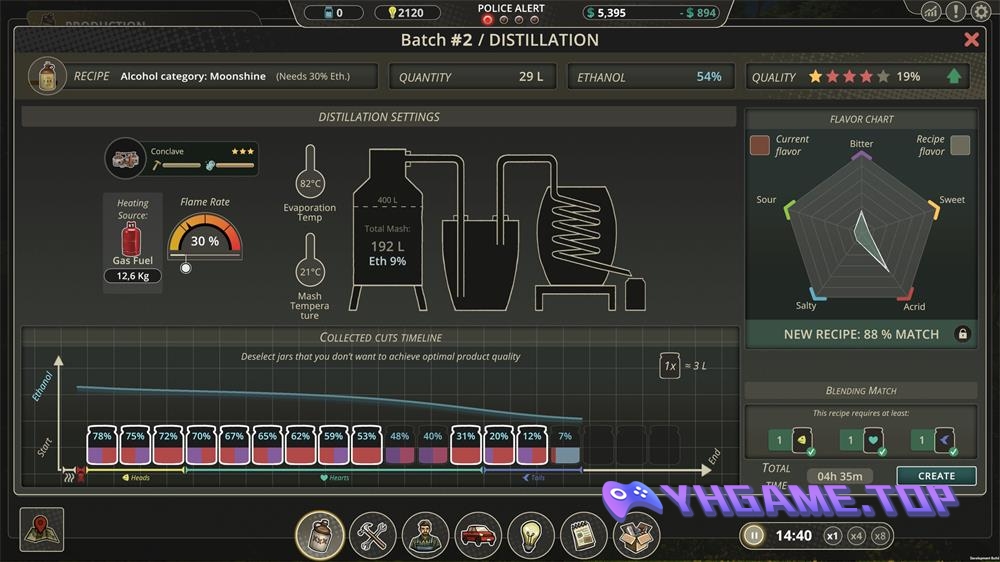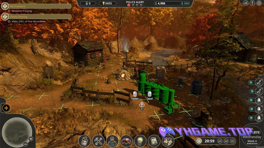 大家都爱私酿酒。而现在,你可以游玩这款情节丰富,专注于酿造私酿酒、白兰地、威士忌和伏特加的经营游戏。发酵、蒸馏,而后为你酿的酒取一个你喜欢的名字。将自己的生意发展壮大。脑子要放灵光,但更要谨慎。 因为除非你被抓到……否则就没什么事是违法的!