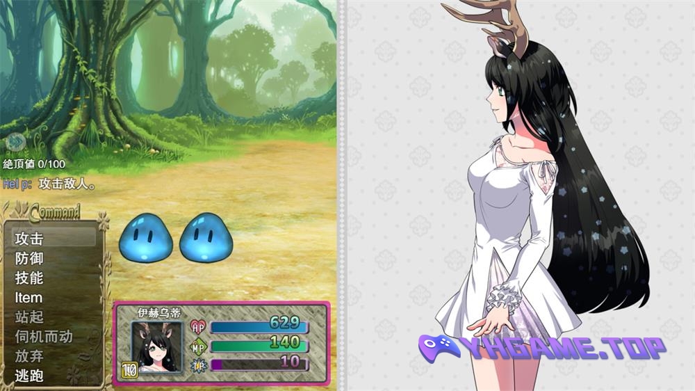 鹿耳兽娘伊赫乌蒂被莫名地传送到了某教堂,被推崇为圣女?踏上了打败独裁王札特瓜的神奇旅途。但是冒险似乎充满了各种各种事情……无论是野外的敌人,还是镇上的村民,都对她虎视眈眈!这是一个大型开放世界的RPG游戏,有四种不同的结局。
