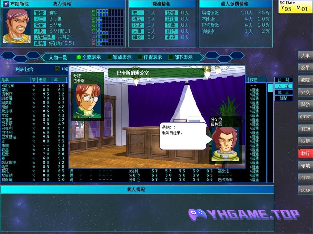 一款类似三国志+太阁立志传的策略游戏,背景是太空作战星际争霸。想当出来镀金的二世祖,心狠手辣的大老板或干脆是到处流浪的浪人,都可以~游戏包含了超过30种不同的发展路线,各种神奇至极的奇妙玩法!攻城略地,开大后宫,当奴隶主,成为屑皇帝,或干脆和全宇宙为敌也可以!