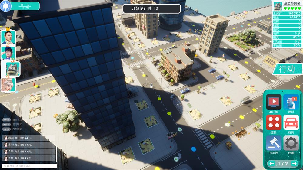 《创业大亨》是一款类大富翁游戏,在保留了核心玩法的同时,进行了大胆的创新,脱离了传统棋盘与回合制的游玩模式,以立体的都市为基底,辅以精致的3D模型,绝对能让习惯了传统大富翁玩法的玩家们体验到截然不同的乐趣。