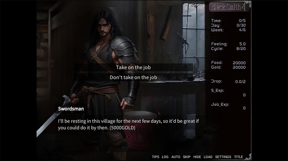 我是一位铁匠,虽然还是一个菜鸟,不过每天都在勤奋工作。我出乎意料地喜欢这份工作。我用工作赚来的钱去红灯享乐。之前我很中意的一个女孩子已经辞职不干了。不过那个时候我也没什么钱,所以也并不经常去。这次店里新来了一个超可爱的女孩子,令我为之疯狂。即使在工作时,我的脑海里也满是她。虽然我希望每天都能见到她…可是钱…只能制作便宜货的我并不能攒够每天去红灯的钱。因此我必须日益磨砺铁匠的技艺,力求增加每天的收入。