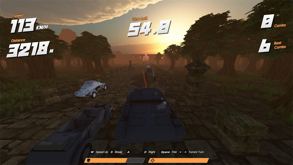 驾驶你的坦克在笔直的道路上,有许多车辆挡在你前方,运用你高超的驾驶技巧绕过他们或者将坦克的炮管转向……轰的一发除掉。炸开一切,并与卡琳教练进行互动。